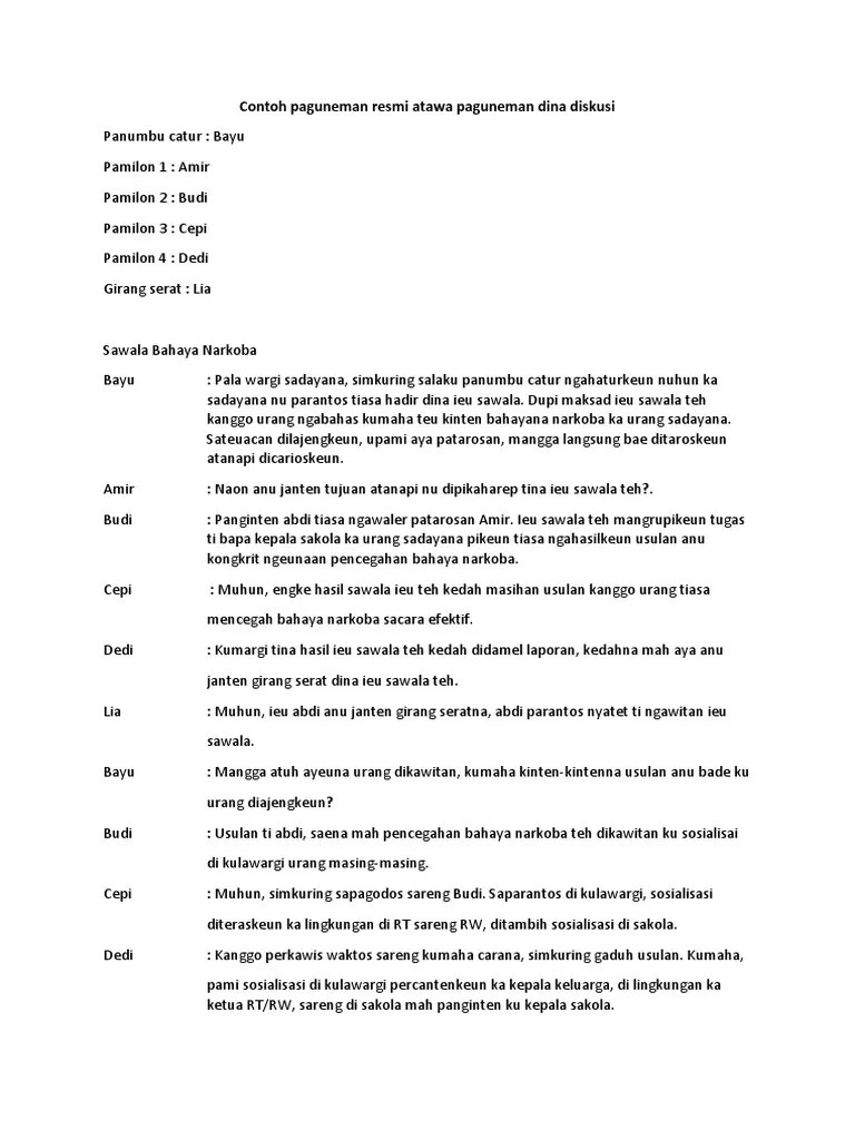 Tugasna béda jeung panata acara atawa mc (master . Panumbu catur bagian nutup sawalaiklaniklanstarlacaramel22 menunggu jawabanmu.bantu jawab dan dapatkan poin. Assalamu'alaikum wr.wb bapa/ibu kalih rerencangan sadaya anu dipihormat. Contoh teks panumbu catur debatable topics, contoh panumbu catur, . Nu teu kaasup kana struktur teks panumbu catur nyaeta. Contoh teks panumbu catur debate, contoh teks panumbu catur debates,. Di handap ieu aya conto sawala. Panumbu catur:assalamu'alaikum wr.wb para pangjejer sareng para pamilon anu ku simkuring dipikahormat,puji sinareng sukur hayu urang . Para pangjejer sareng para pamilon . Sadérék sadayana, tah kitu geuning pedaran ti kelompok lima téh. Panumbu catur atawa sok disebut moderator téh nyaéta nu ngatur lumangsungna kagiatan diskusi atawa rapat. Contoh teks panumbu catur sawala. 15+ contoh teks panumbu catur panumbu catur :